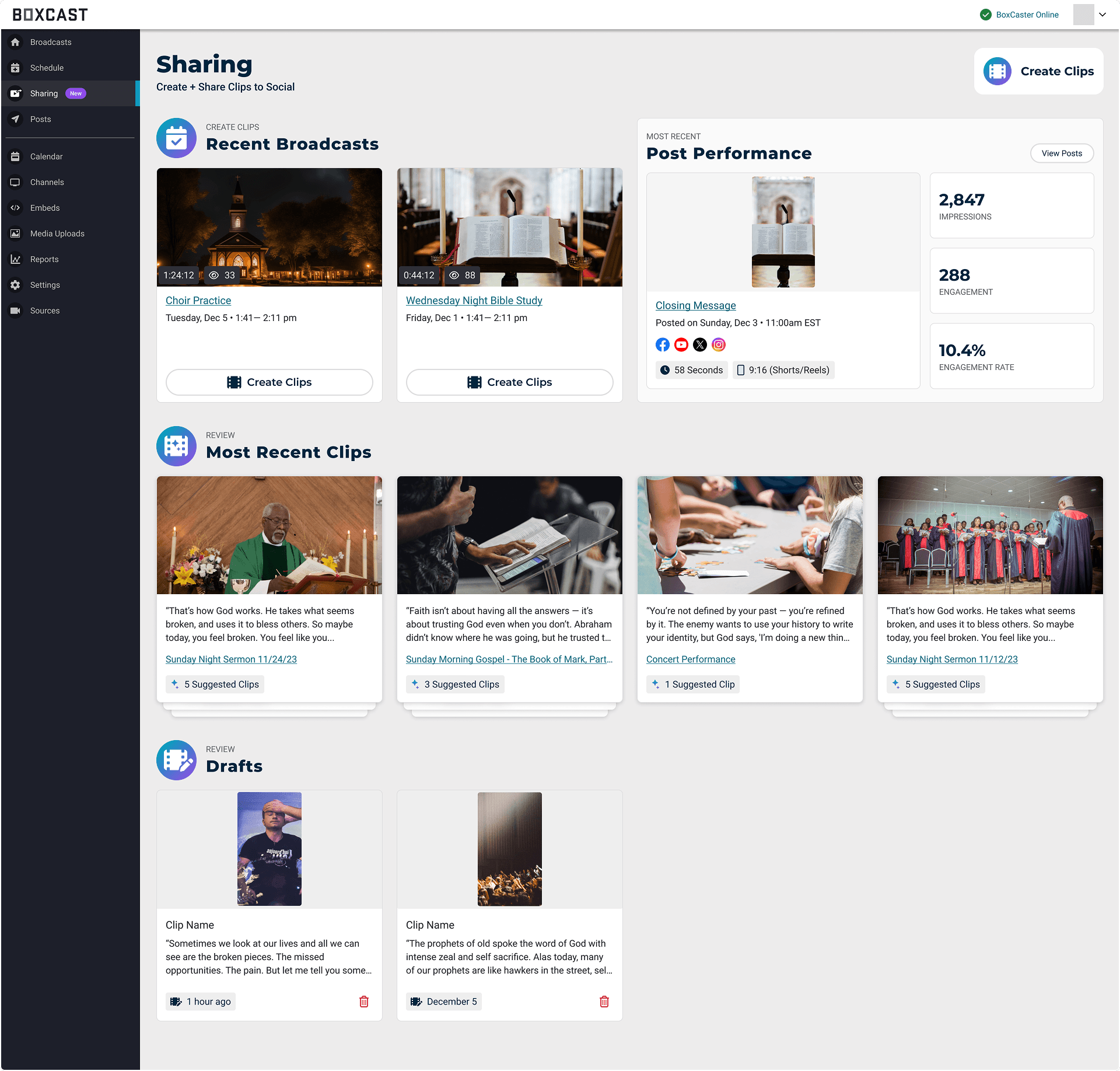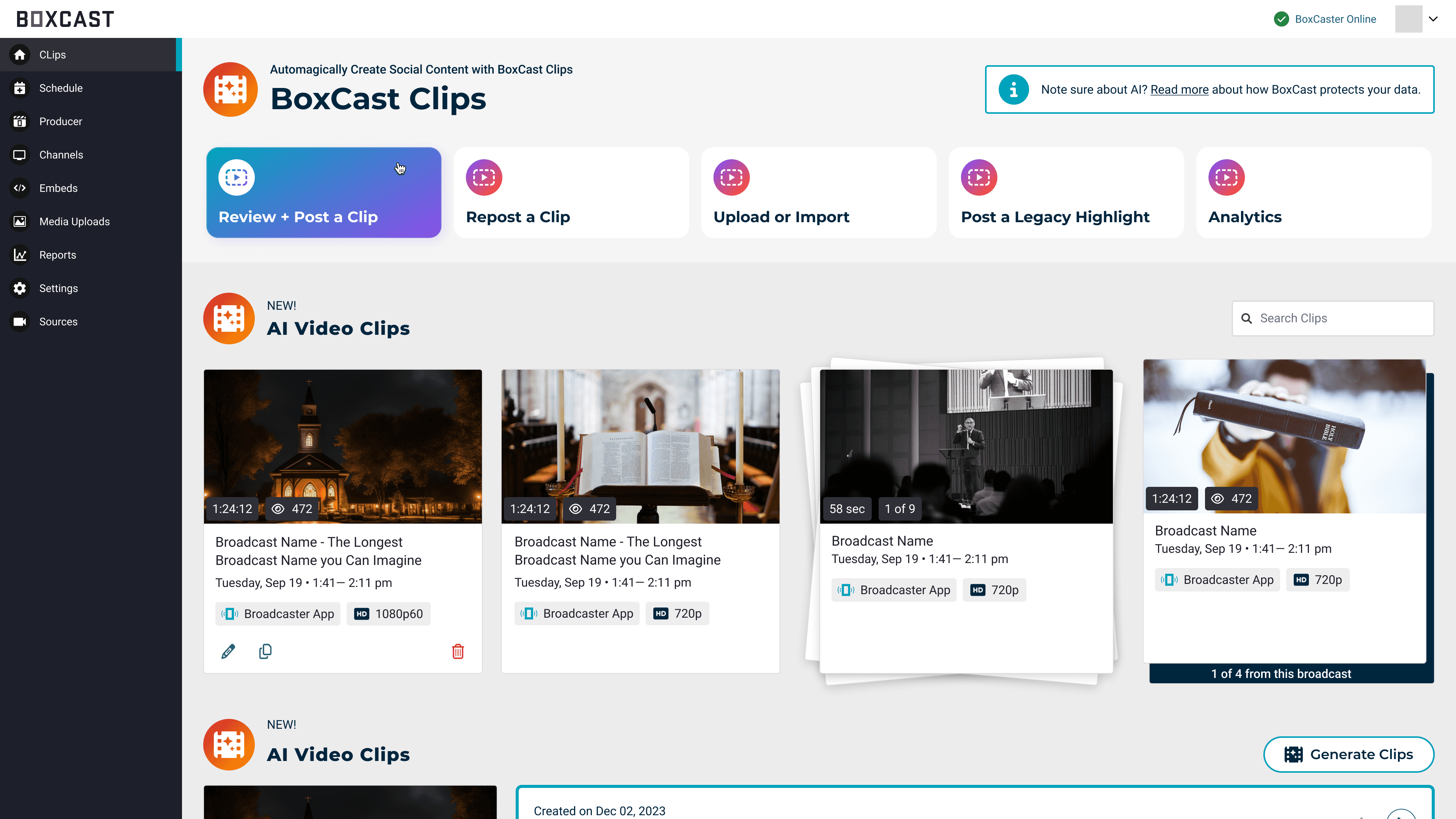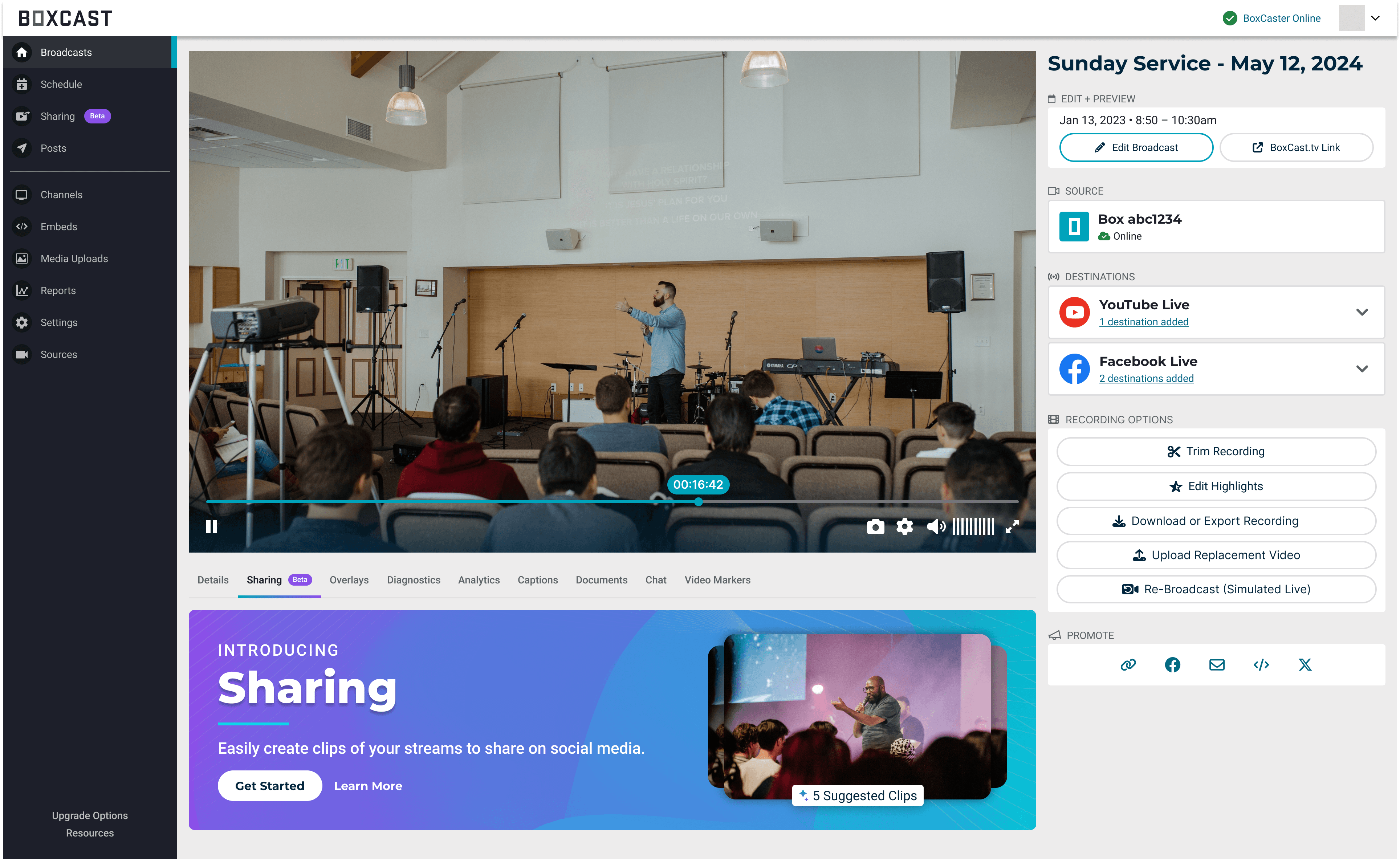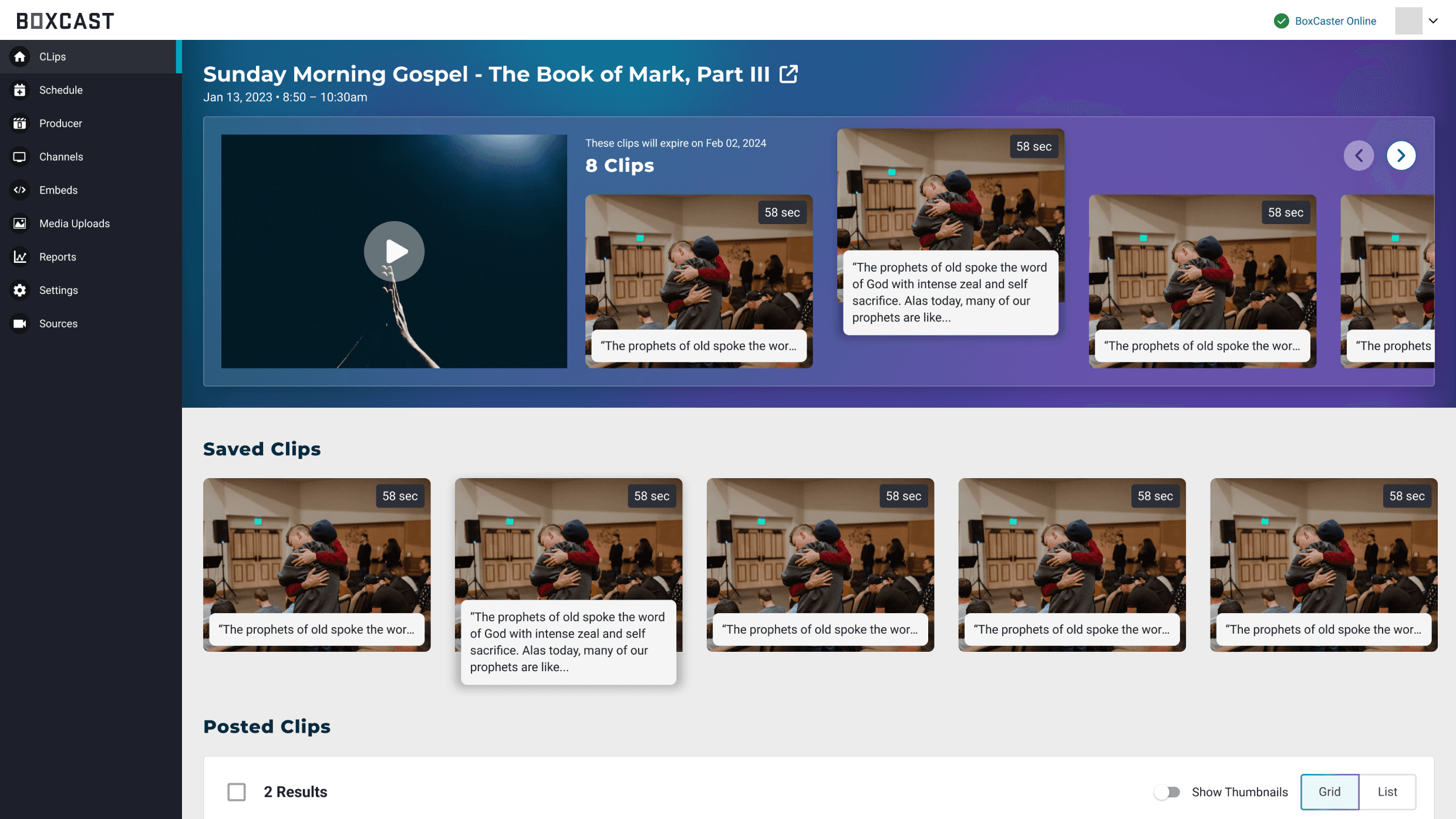 Based on Product and User Research, we’d heard that BoxCast customers were seeking a better workflow solutions for getting clips from their broadcasts to share on social. We had a legacy feature that could be used, but the experience was subpar overall compared to modern video editing and clipping software.