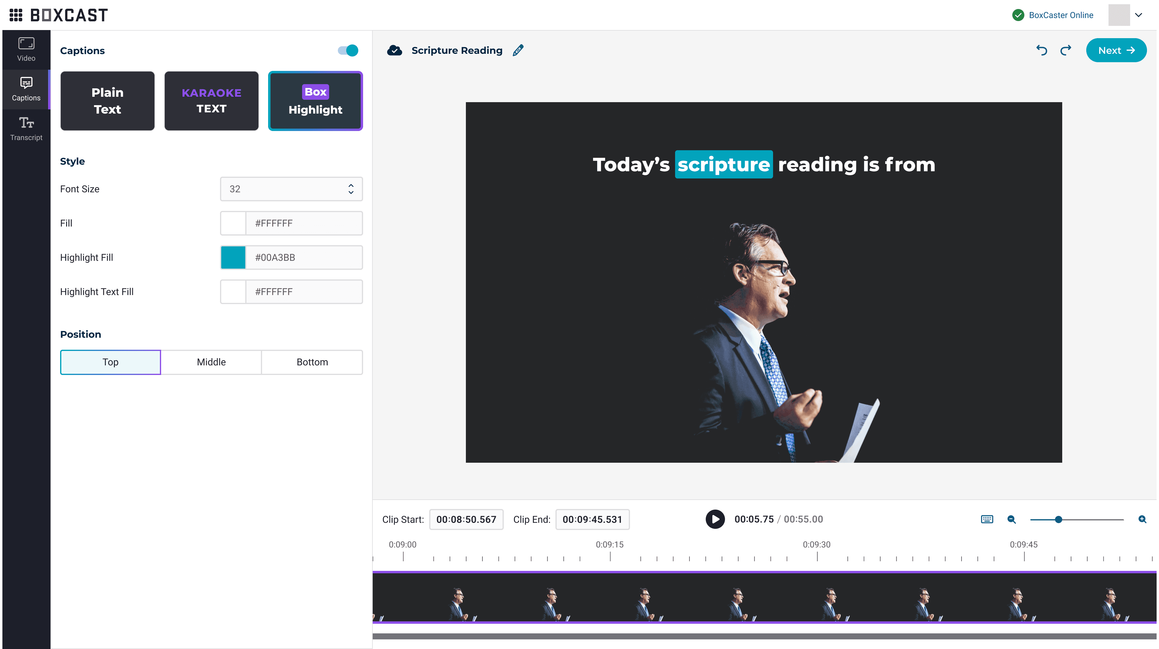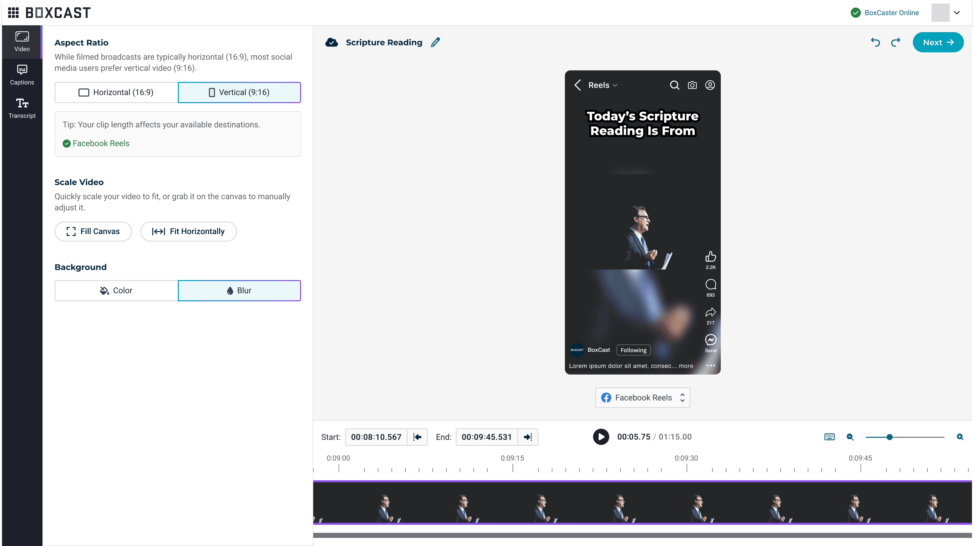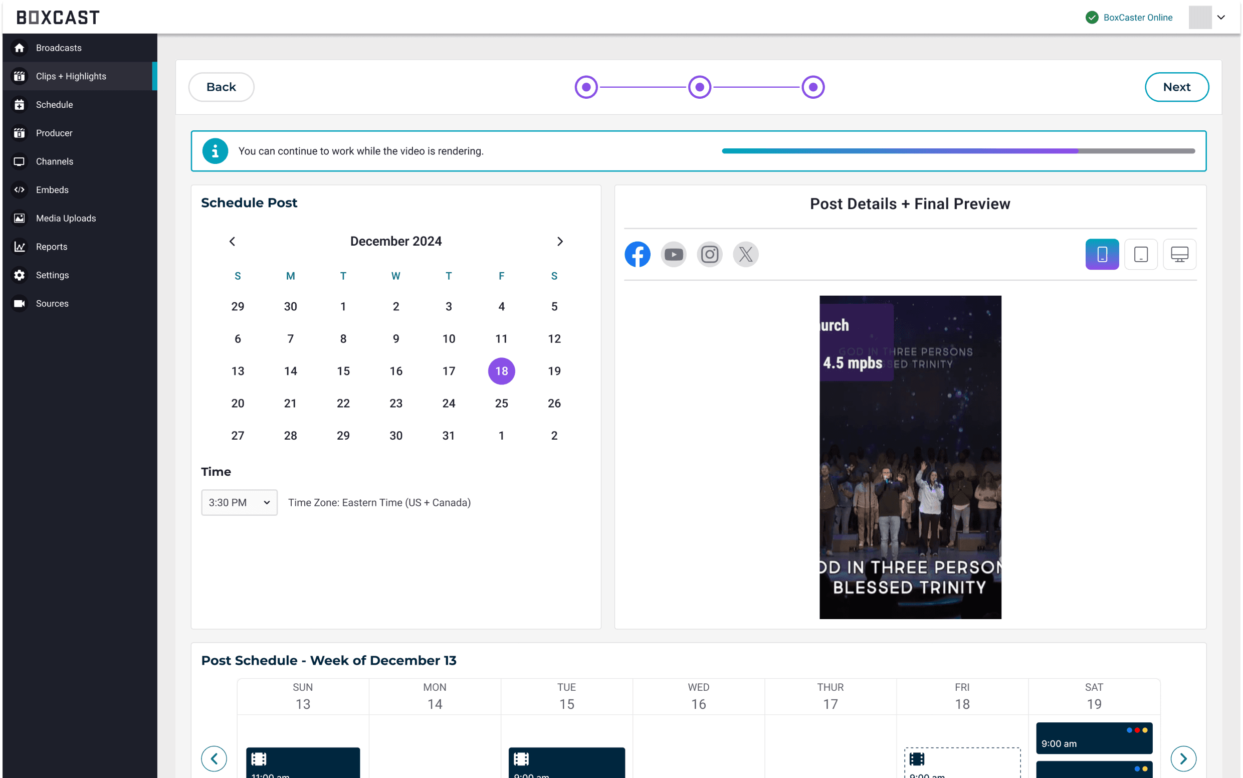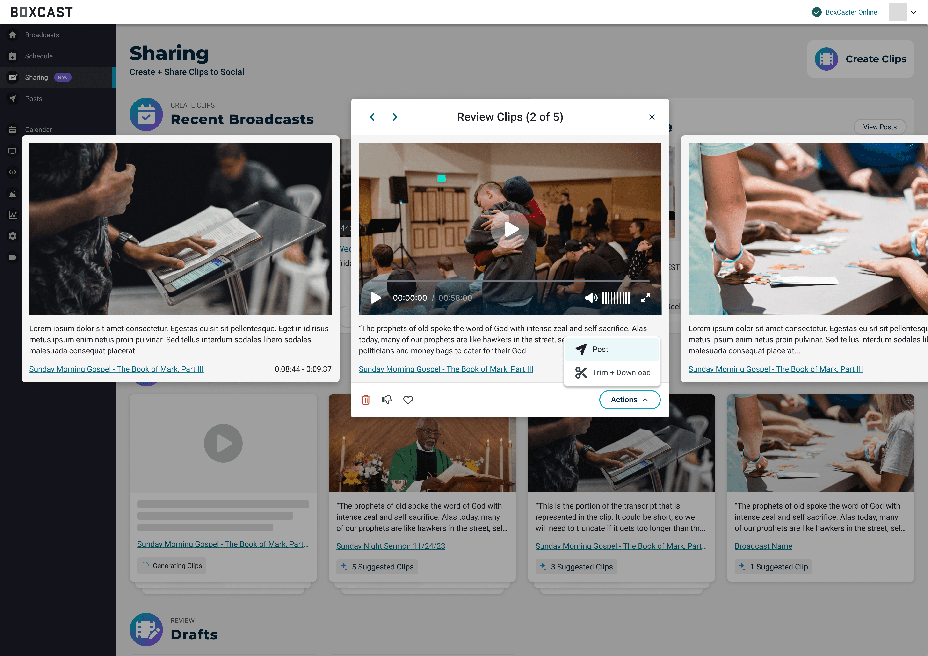 Based on Product and User Research, we’d heard that BoxCast customers were seeking a better workflow solutions for getting clips from their broadcasts to share on social. We had a legacy feature that could be used, but the experience was subpar overall compared to modern video editing and clipping software.